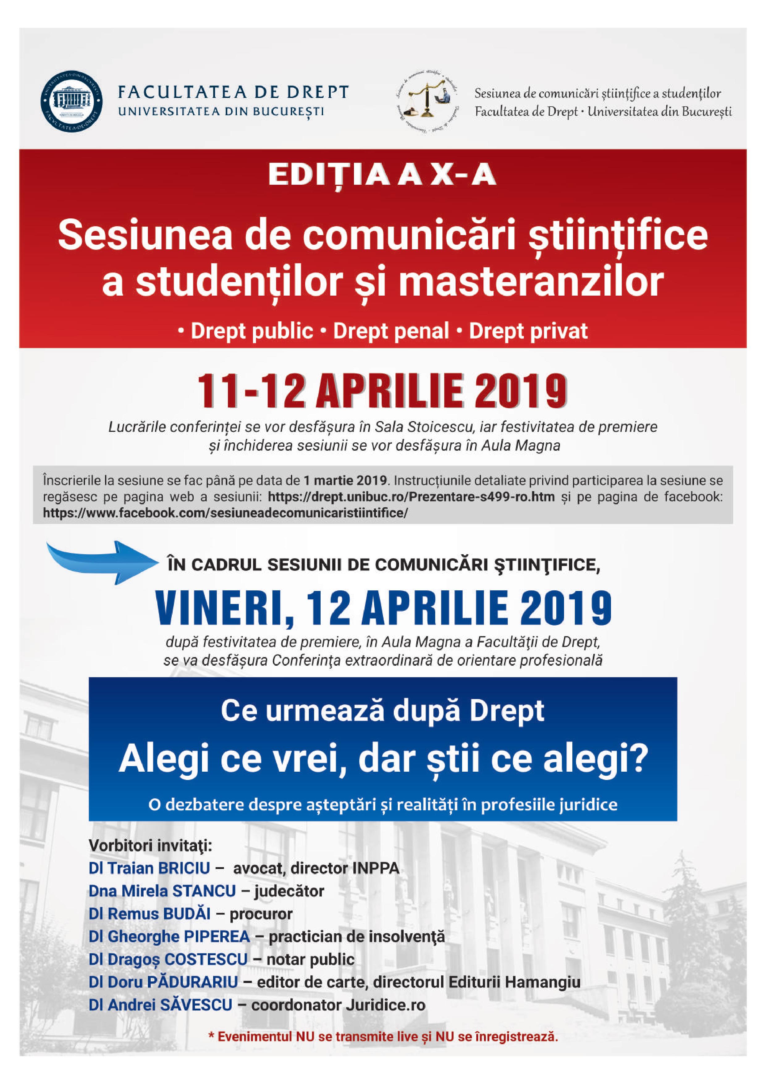 Laureații celei de-a a XVII-a ediții a Sesiunii de Comunicări Științifice a studenților și masteranzilor Facultății de Drept (09.04.2026)
