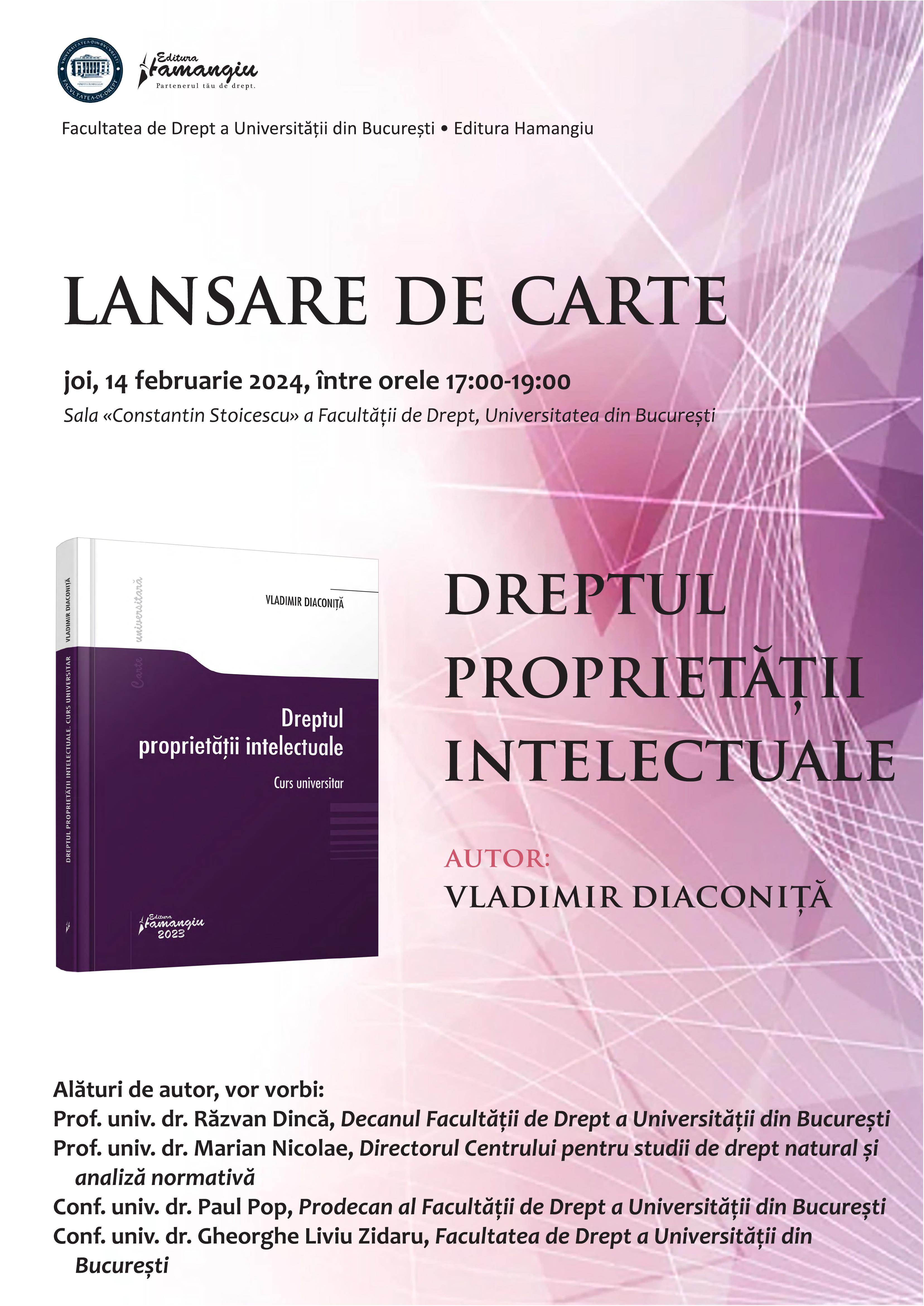 Lansarea volumului „Dreptul proprietății intelectuale” - autor Vladimir Diaconiță