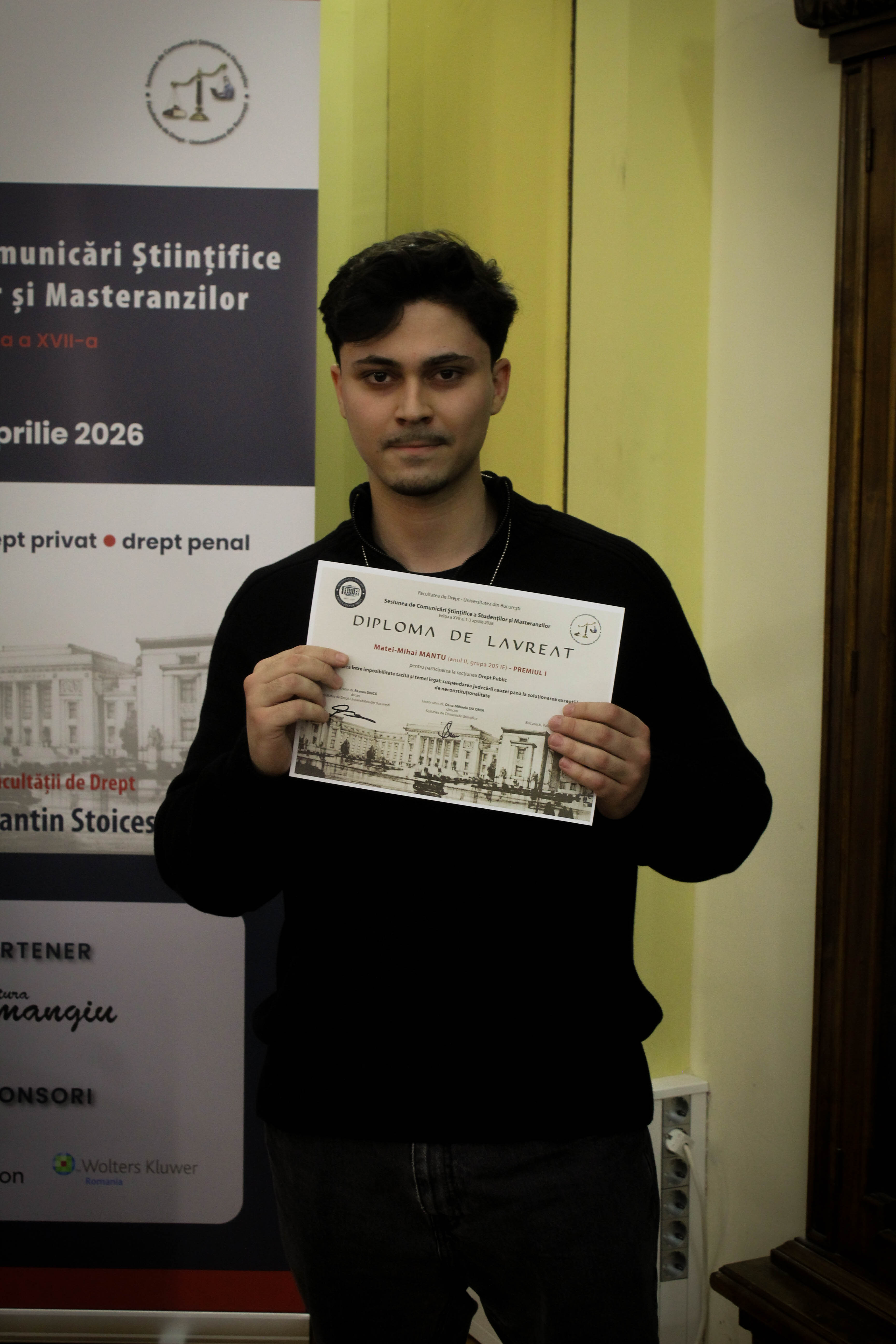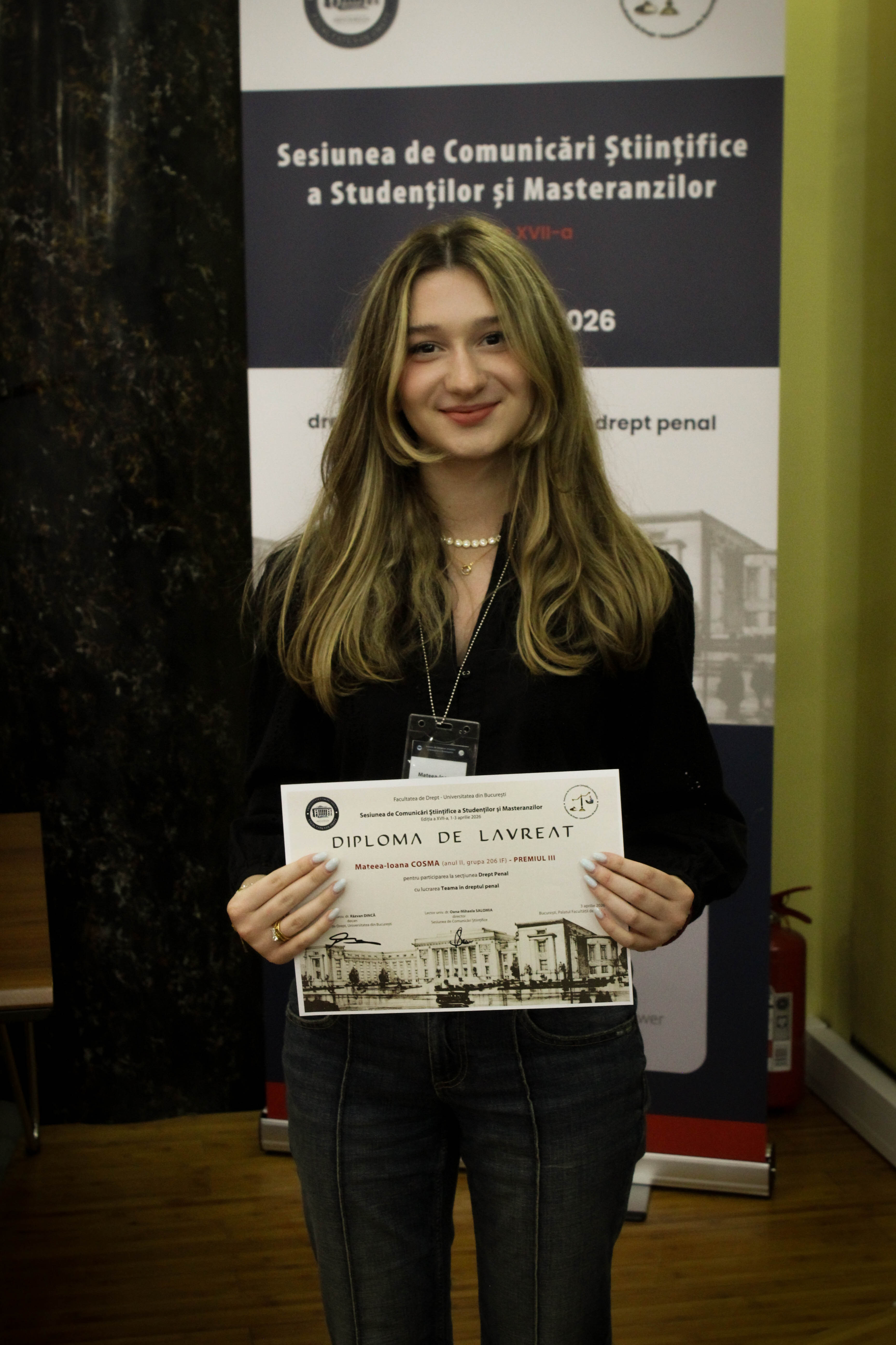 Facultatea de Drept a Universității din București felicită toți participanții pentru calitatea contribuțiilor prezentate, precum și studenții și masteranzii premiați pentru rezultatele obținute. Totodată, această ediție reconfirmă rolul Sesiunii de comunicări științifice ca spațiu de afirmare a excelenței academice și de încurajare a cercetării juridice încă din perioada formării universitare.